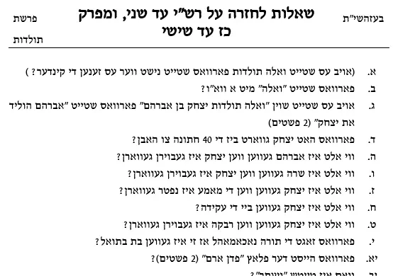 אידיש שאלות לחזרה עד שישי – כתה ו