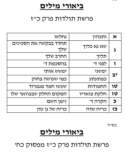 ביאורי מילים פרשת תולדות פרק כז
