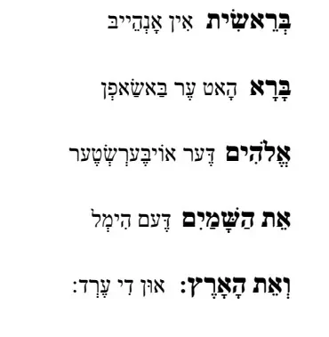 בראשית – טייטש – פסוק א' – אידיש