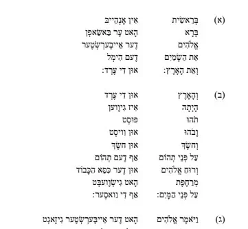 בראשית – טייטש – פרק א' – אידיש
