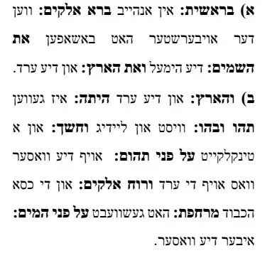 בראשית – טייטש – שאלות הבנה – 3 פסוקים – אידיש