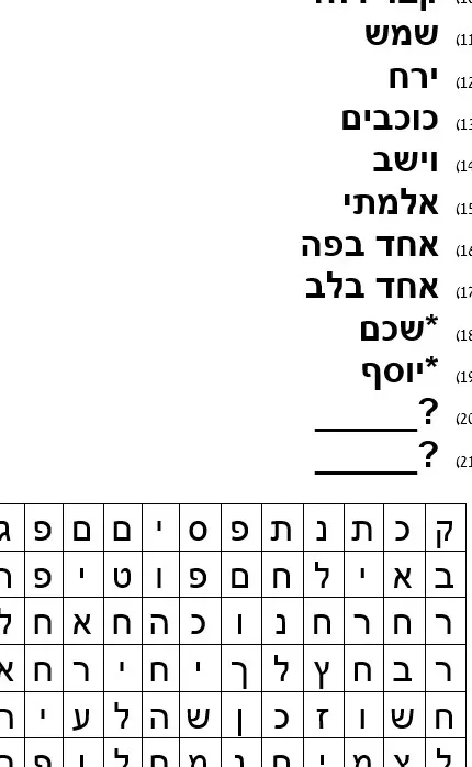 דף חידון – תפזורת 21 מילים – וישב