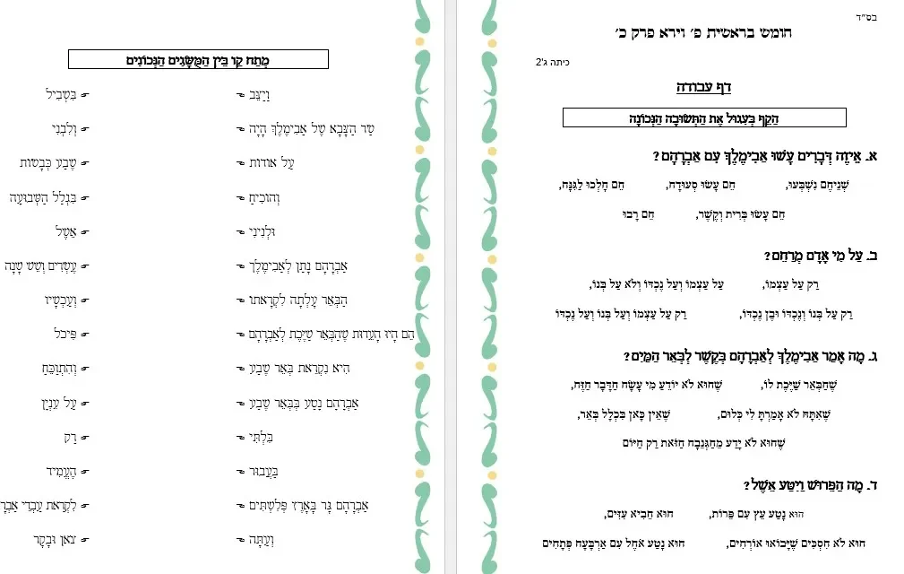 דף עבודה בהבנת הנקרא – מושגים – בפ' וירא פרק כ' (6)