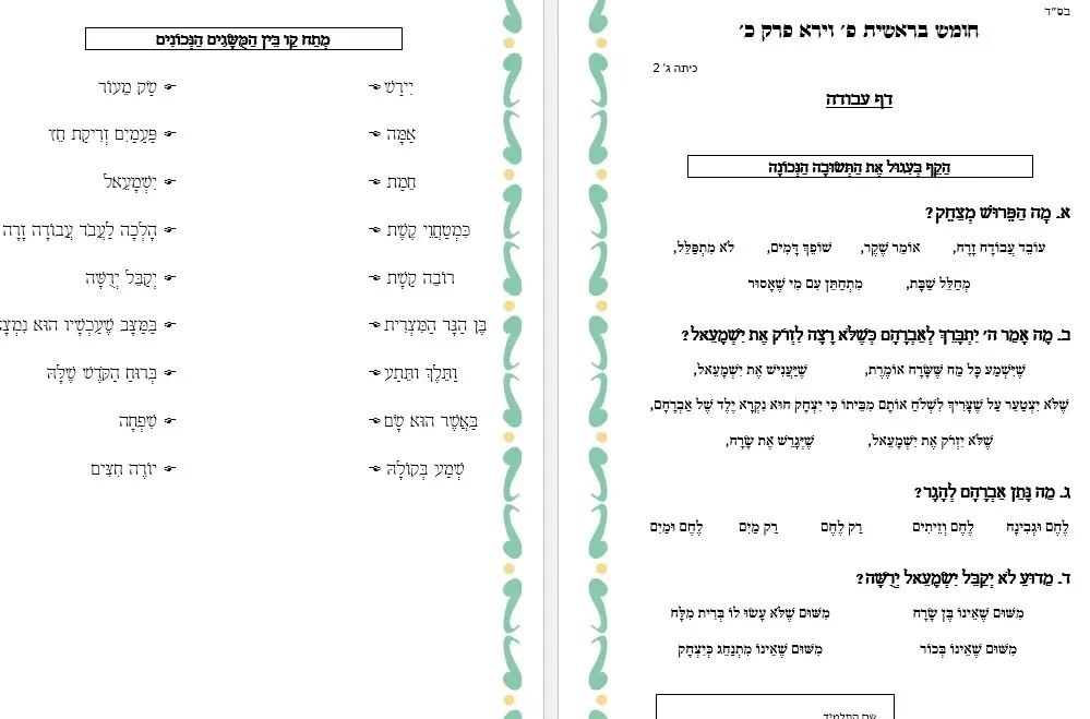 דף עבודה בהבנת הנקרא – מושגים – בפ' וירא פרק כ' (5)
