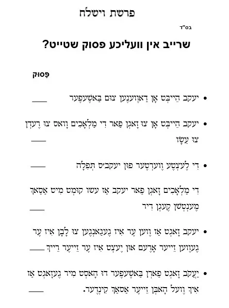 דף עבודה הבנה – אִין וֶועלְכֶע פָּסוּק שְׁטֵייט – וישלח
