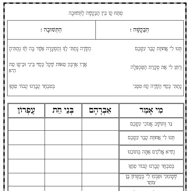דף עבודה – הבנה – אברהם בני חת עפרון