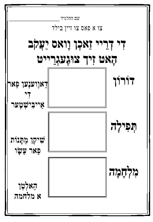 דף עבודה (הבנה) – הבנת הנקרא – דורון תפילה ומתנה – וישלח