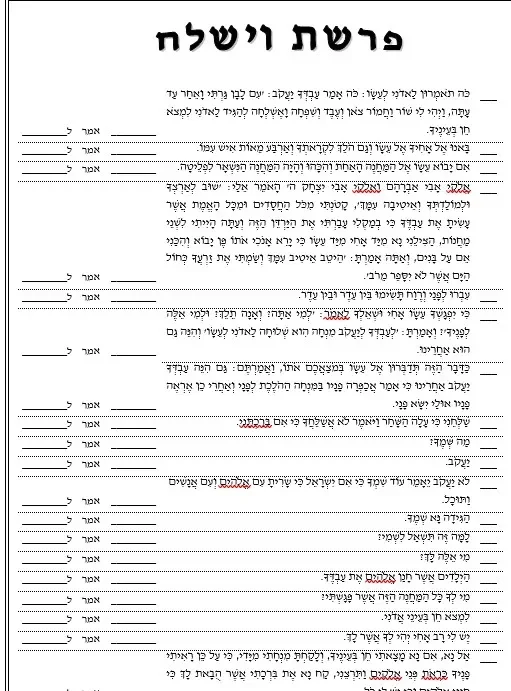 דף עבודה הבנה – מי אמר למי – וישלח (הרב הורן)