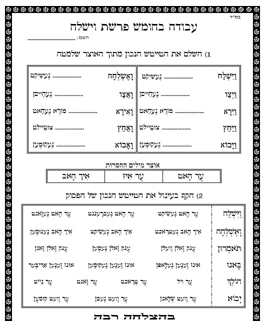 דף עבודה טייטש – השלם את הטייטש – וישלח