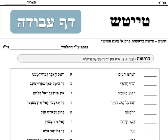 דף עבודה – טייטש – ליום חמישי מששת ימי בראשית