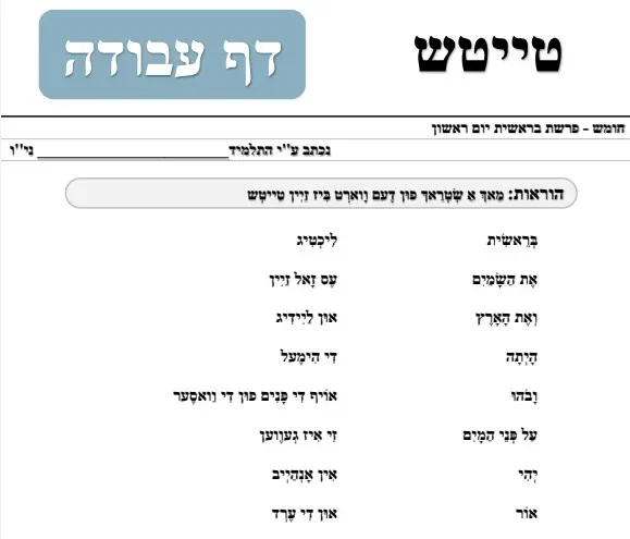 דף עבודה – טייטש – ליום ראשון מששת ימי בראשית