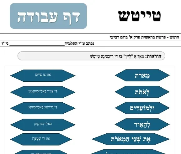 דף עבודה – טייטש – ליום רביעי מששת ימי בראשית