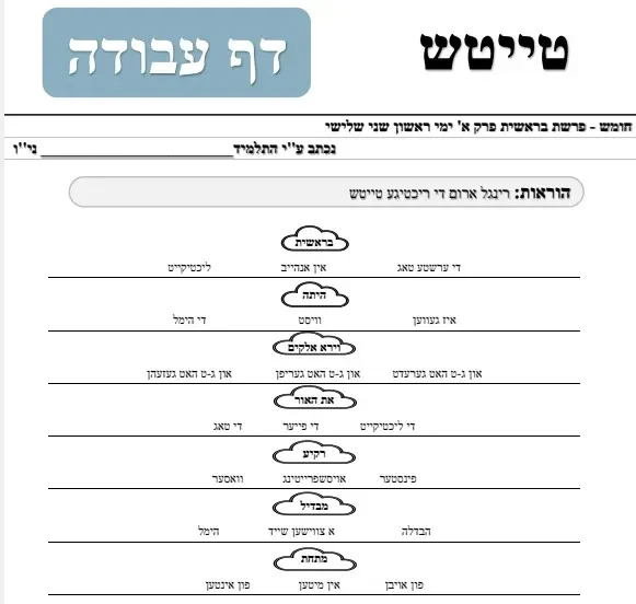 דף עבודה – טייטש – לימי ראשון שני שלישי מששת ימי בראשית