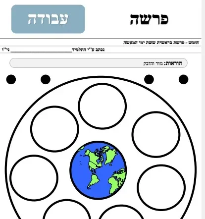 דף עבודה – לגיל הרך – בריאת העולם – גזירה והדבקה