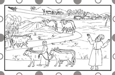 דף עבודה (צביעה ומדבקות) – מנחה לעשו – וישלח