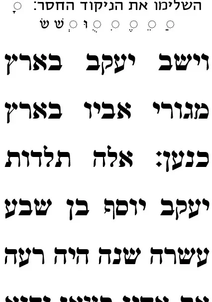 דף עבודה קריאה – השלימו ניקוד – וישב