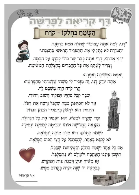 דף קריאה – 'השמח בחלקו' לפרשת קרח