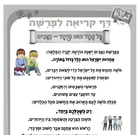 דף קריאה – כל אחד הוא מיוחד – לפרשת ניצבים