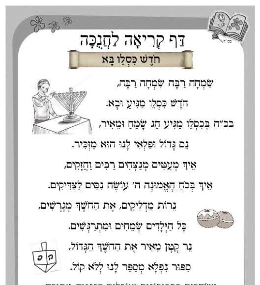 דף קריאה לחנוכה – חודש כסליו בא