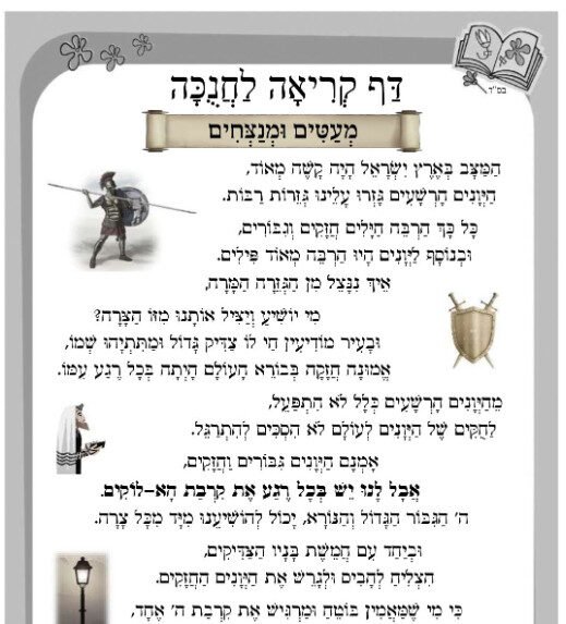 דף קריאה לחנוכה – מעטים ומנצחים