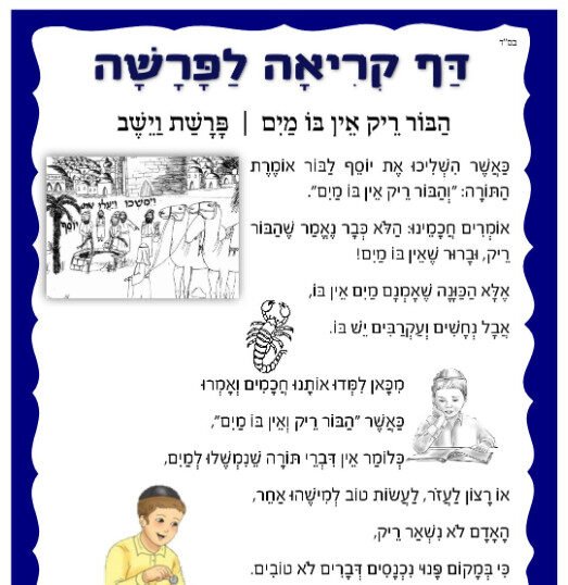 דף קריאה לפרשת וישב – הבור ריק אין בו מים