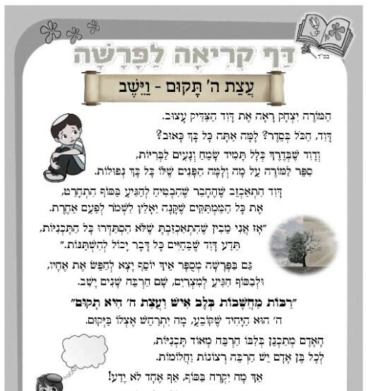 דף קריאה לפרשת וישב – עצת ה' היא תקום
