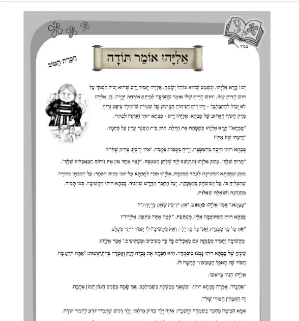 דף קריאה – סיפור בנושא הכרת הטוב – סדרת עבודת המידות