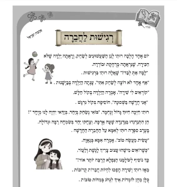 דף קריאה – סיפור בנושא רגישות – סדרת עבודת המידות