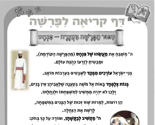 דף קריאה – סיפור הפרשה בקצרה – לפרשת פנחס