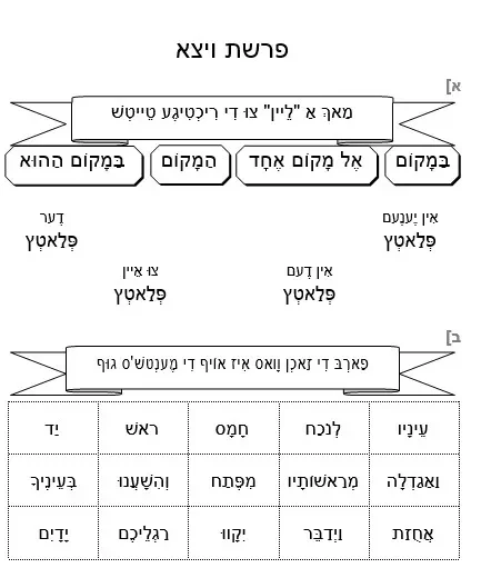 דפי עבודה – באידיש – על פרשת ויצא – תחילת הפרשה – לכיתה ב – להבנת הנקרא