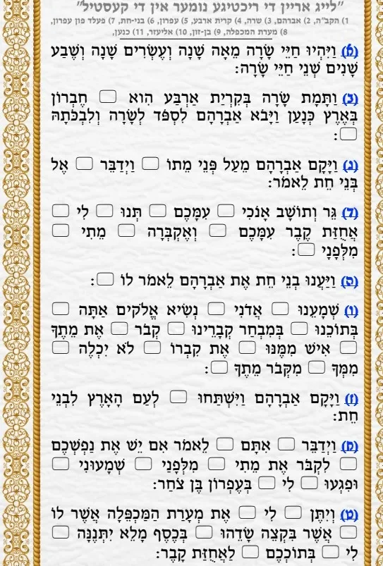 דפי עבודה הבנת הנקרא משהו מיוחד מסודר ויפה על פרשת חיי שרה – עד שלישי