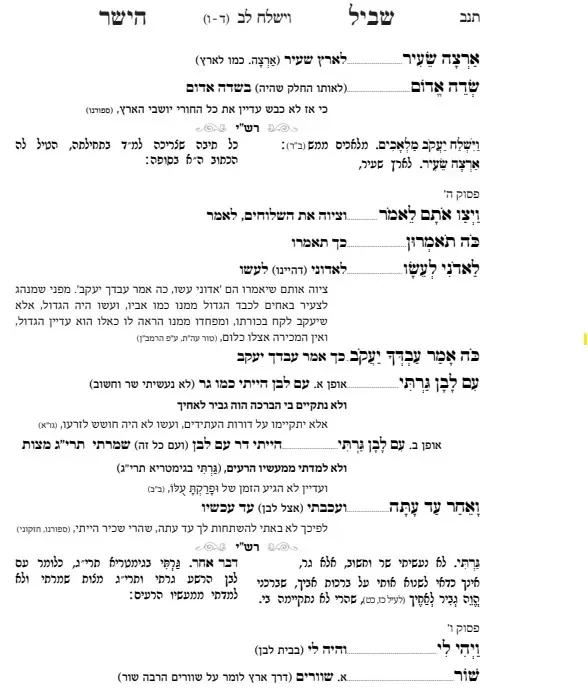 דפי עברי טייטש + הסבר – לשון הקודש – על כל הפרשה – וישלח