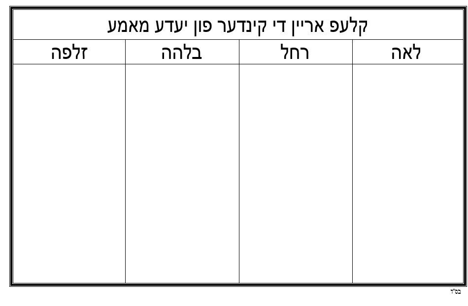 ויצא טבלא בני יעקב – לתלמידים למלאות