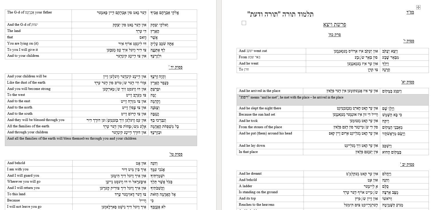 ויצא עברי טייטש אידיש אנגלית – vayetze