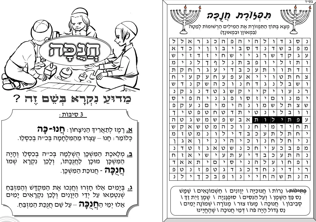 חוברת למידה – עבודות + תפזורות + ידיעות + חידות ועוד – חנוכה