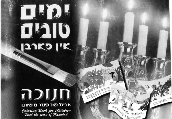 חוברת ציורים – עם כיתוב תיאור ב – אידיש ואנגלית – חנוכה