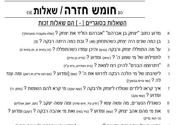 חומש חזרה נ"א שאלות ותשובות