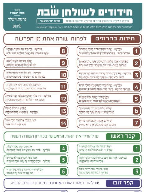 חידודים לשולחן שבת לפרשת וישלח (שנת פ"ג)