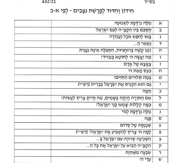 חידון א ב בלי תשובות לפרשת ניצבים (פרחי הדגל)