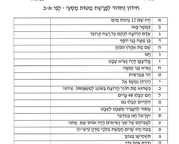 חידון א' ב' פרשת מטות מסעי בלי תשובות (1) – פרחי הדגל