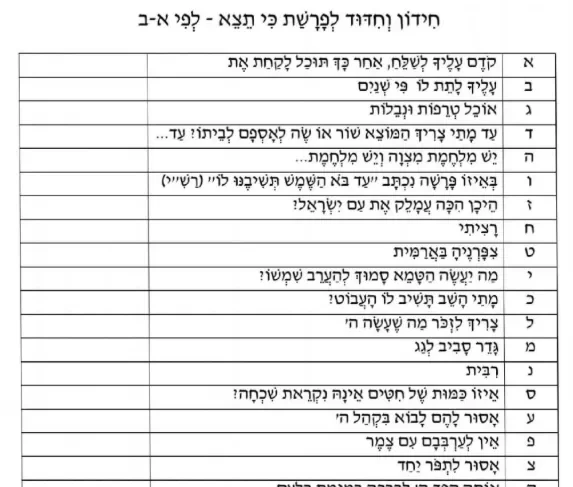 חידון א – ב 2 ללא תשובות לפרשת כי תצא – (פרחי הדגל)