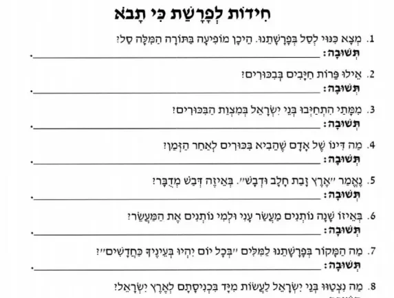 חידות בלי תשובות – פרשת כי תבא (פרחי הדגל)