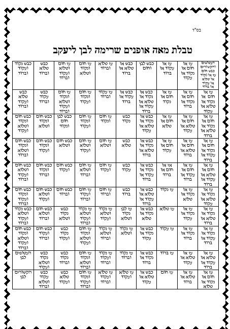 טבלת מאה אופנים שרימה לבן ליעקב
