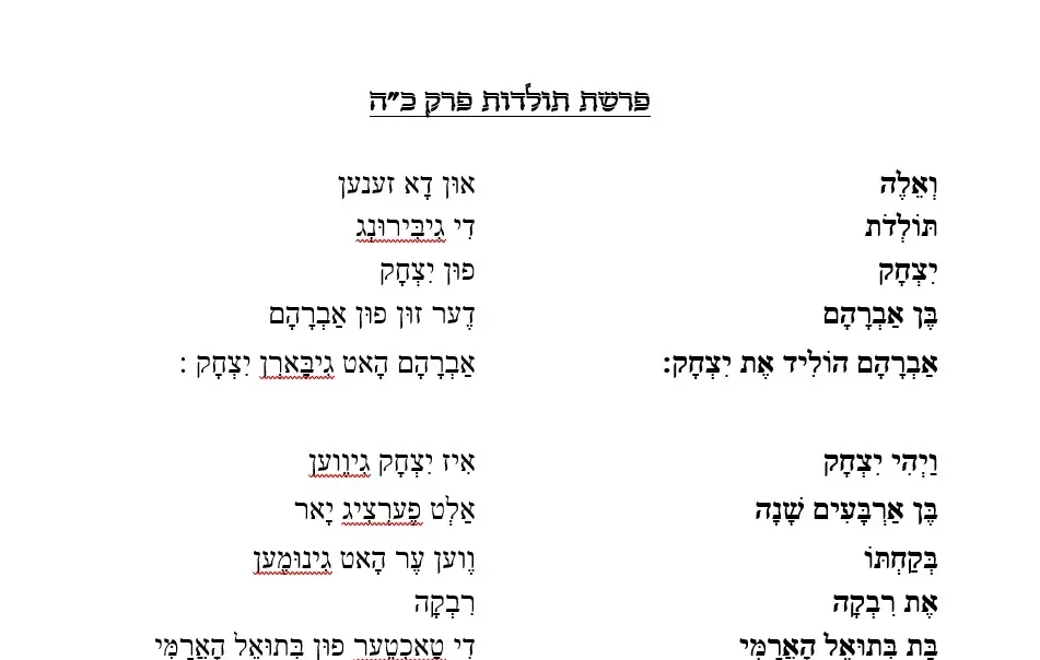 טייטש תולדות – כלהפרשה – ירושלמי
