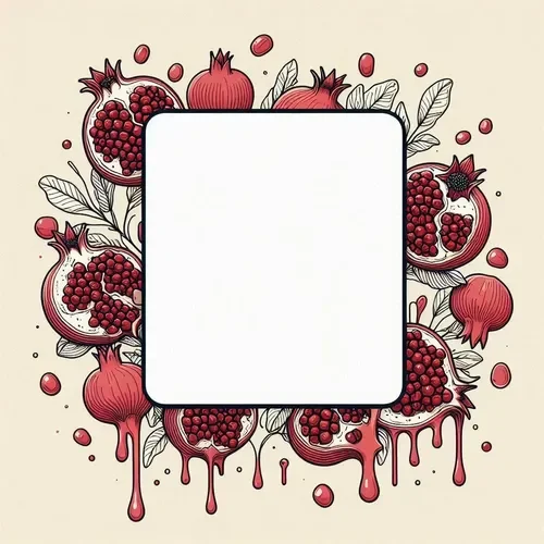 כרטיס שנה טובה – מסגרת מרובעת, רימונים נוטפים ועלים (1)