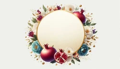 כרטיס שנה טובה – מסגרת עגולה, רימונים ופרחים (2)