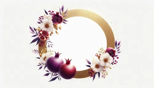 כרטיס שנה טובה – מסגרת עגולה, רימונים ופרחים (8)