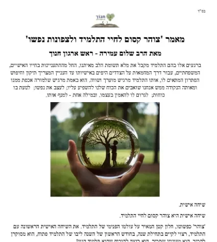 מאמר 'צוהר קסום לחיי התלמיד ולצפונות ליבו'