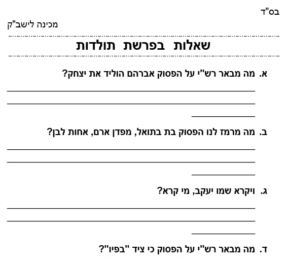 מבחן – בפרשת תולדות עם פירשי זל – נה שאלות