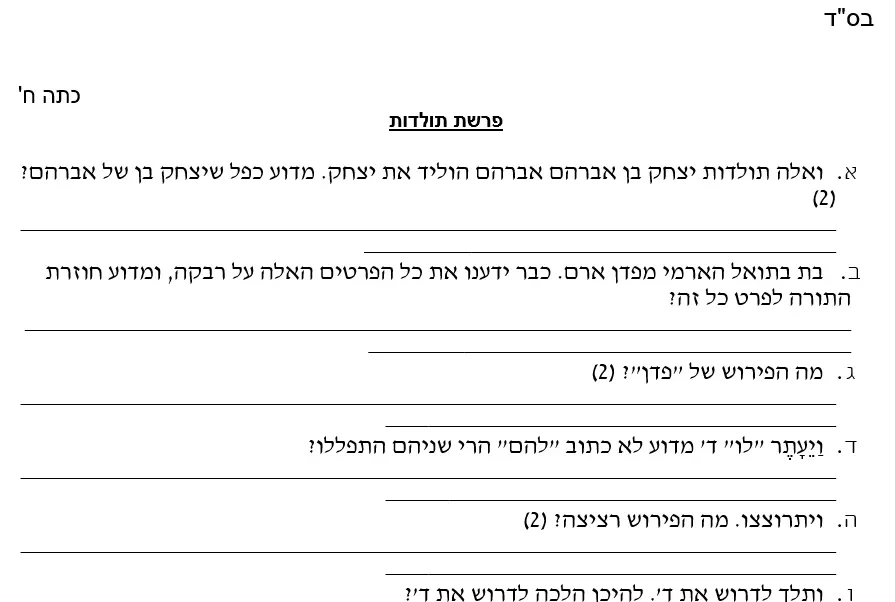 מבחן – כיתה ח – נב שאלות